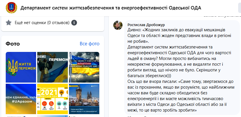 Я плохо поняла, что там произошло, кто и зачем разместил сообщение с рекомендацией выехать из Одессы и области, но оно заставило людей понервничать.