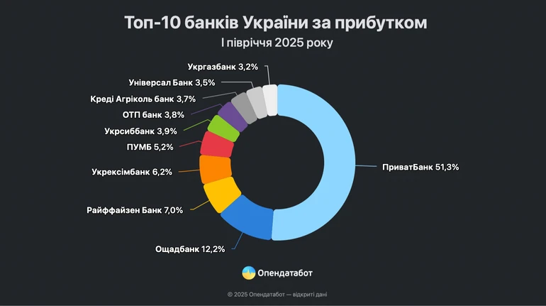 Зазначається, що топ-10 найбільших банків залишився незмінним. Разом вони згенерували 68,05 млрд грн — 87% прибутку всього сектору.