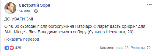 _igor писал(а):На засіданні Синоду Константинопольського патріархату в четвер, 11 жовтня, було прийнято рішення продовжити процедуру надання Томосу про автокефалію Українській православній церкві. Про це розповів предстоятель Української православної церкви Київського патріархату Філарет.