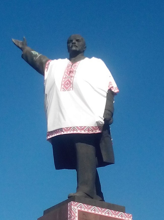 А вышиванка на ильиче как бы намекает,что не место в свободной от диктатуре стране подобным архитектурным выкидышам,возведенным исключительно в целях пропаганды.