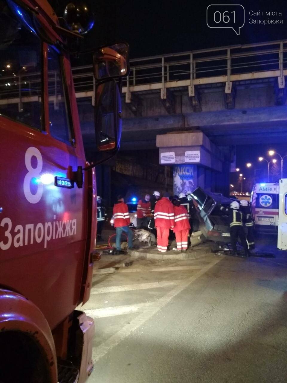 В Коммунарском районе районе Запорожья водитель автомобиля ВАЗ влетел в бетонную опору железнодорожного моста.
