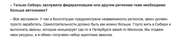 Нємцов відзначає, що в Росії все частіше говорять про федералізацію окремих областей, такі сигнали російський уряд намагається присікти на корені.