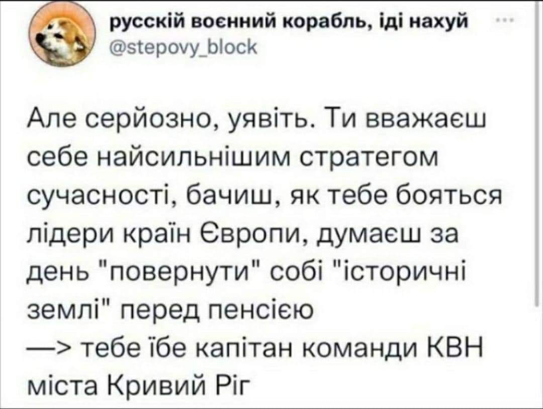 Милена, Путин же террорист номер один в мире , он получит от нас, от Зеленского все свои хотелки вот этими бесконечными снарядами на Киев. Власть менять не будет. Вода в Крым, побережья морей под контролем вояк русских. статус без НАТО, донбасят вернуть в страну на автономных правах. Он нас так утюжить будет. Что у Земли на все согластся. И выглядеть будет типа ой так эта сама Украина так захотела. Просто вернёт в свою сферу влияния как при Яныке. прям при Зеленском. Это мое Имхо и оно мне не нравится, но я сегодня пессимист. Нашему Зеле не позавидуешь, ну говорили же ему нафиг, нафиг в клоаку политическую лезешь