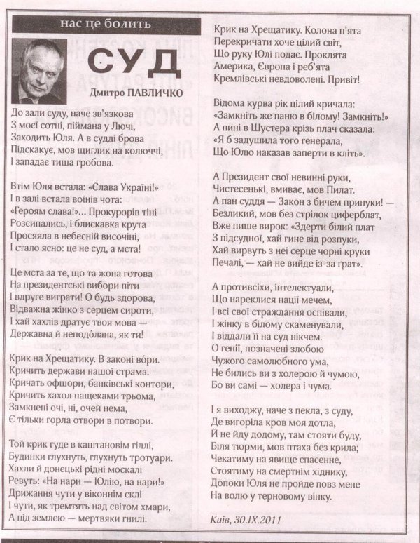 Український поет, на віршах якого виростало нове покоління української нації, громадсько-політичний діяч та герой України Дмитро Павличко у вірші висловив свою політичну позицію та сприйняття цьогорічних кандидатів у Президенти.