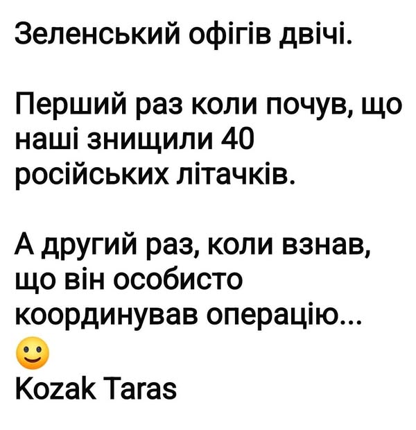 Все, що Зеленський говорив і обіцяв він виконав. Всі свої плани і мрії він за п'ять років реалізував. А те, що нас обурювало і люди приймали за чисту монету, Володимир, як вправний актор талановито грав, грав щоб ми йому не заважали виконувати його головне завдання. Він грав роль дурнуватої маріонетки кремлівських кротів, якими себе щедро оточив, грав невігласа у внутрішній та міжнародній політиці, грав роль недолугого, нерішучого, брехливого керівника, який поняття зеленого не має що і як робити на посаді президента. Шмигав носом і грав роль обнюханого наркомана, у якого постійна ломка, втома, і депресія!