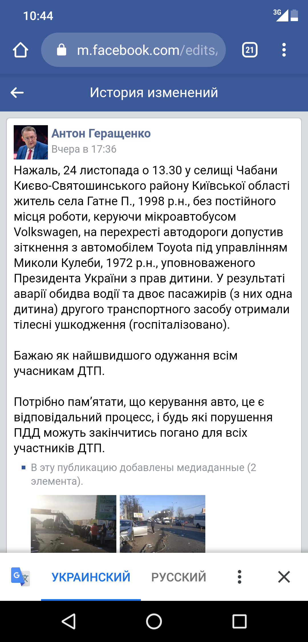 "А вот дети находятся в тяжелом состоянии. У Елисея перелом таза, челюсти, ушибы разной степени, Тимофей в коме, врачи борются за жизнь", - говорится в сообщении в Facebook