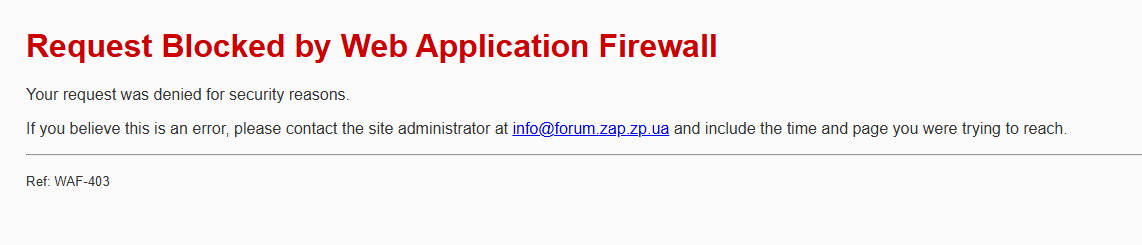 сообщение - не пугайтесь, сработал веб-файрвол, может быть ложное срабатывание. В таком случае напишите мне при каких обстоятельствах, что делали и ссылку где сработало.