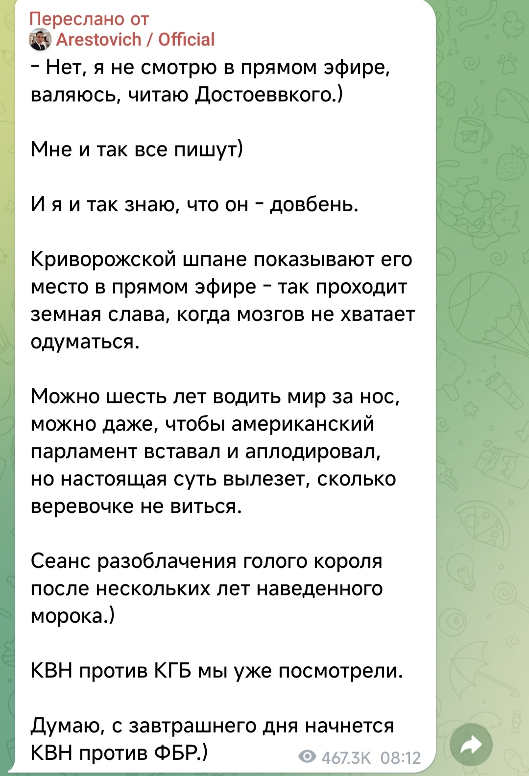 С формулировкой «…за нарративы Арестовича».