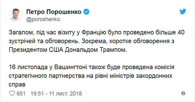 Да и сам Трамп в своем твиттере о встрече с Порошенко почему-то не упомянул...