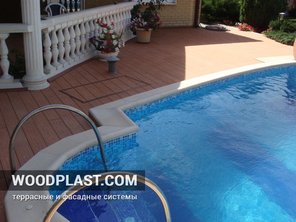 Дом был только построен нашими знакомыми, сами они уехали в Англию жить. Было все, кроме бассейна. Решили сделать для детей и нас любимых. И все бы ничего. Не могла я найти хорошую компанию, чтобы положить качественную палубную доску возле бассейна, может смешно кому-то сейчас, но так бывает. Мне хотелось, чтобы возле бассейна не скользило ничего и декинг из ДПК был отличного качества, рассматривала много компаний. Остановились на компании WoodPlast, понравилось все, сервис, монтаж, качество и хорошая гарантия на террасную доску Mirradex. Кто еще думает к кому обратиться, то лучше компании, чем Вудпласт по террасным доскам из ДПК в Украине я не встречала.