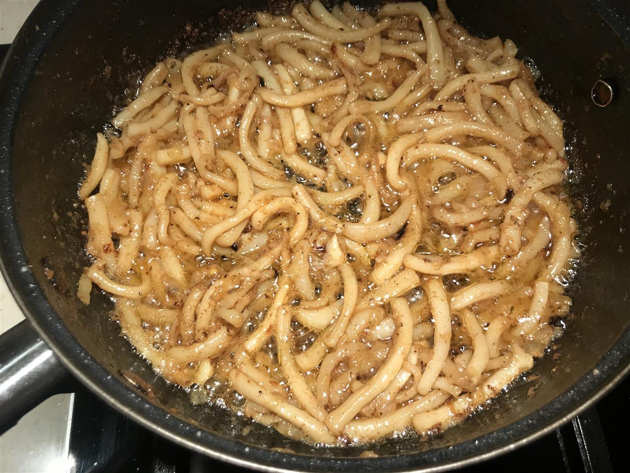 Готовим карамелизированные кусочки яблок. Сироп сахар+вода, когда закипит, добавляем мелко резанные на кусочки яблоки и тушим пару минут. Остывшей смесью, заливаем форму, поверх кусочков лаваша с начинкой, сверху посыпать чуть корицей и в разогретую духовку.