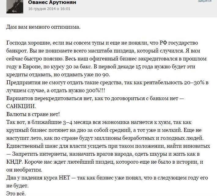 Посмотрите вокруг себя. Скажите честно, вы, вот именно вы, что вы произвели здесь, в России, из российских комплектующих, деталей, сырья, и т.д., что востребовано российскими и международными потребителями? И что вы можете произвести, при стоимости капитала в 25% годовых?